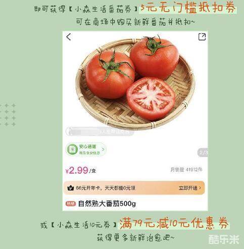 活动期间在游戏中种植番茄即可获得每日优鲜宝券,【小森生活番茄券】无门槛券限量10000张,在5月7日前兑换使用。