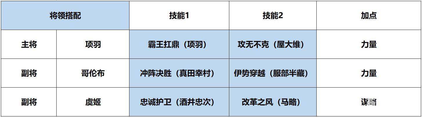 项羽作为一个高品质高力量的将领,前期十分强势。小伙伴们也可以试着搭配不同将领阵容以及技能,依据游戏实际情况应变组合。