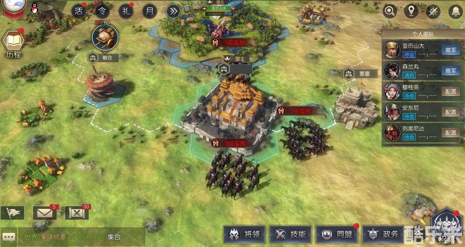 在《征服与霸业》中,开荒阶段是十分重要的,此阶段顺利与否直接影响了我们后面发育的总基调,如果开荒阶段顺利,玩家就能快人一步,抢先占领高等级土地,将领的等级也能得到更快的提升,这样就能够在后面玩家之间对战的时候抢得先机,如果开荒阶段不顺利,将会事事慢人一步。在开荒阶段,玩家们的资源产量都是很低的,所以如何在这阶段合理利用资源就显得尤为重要。资源的主要用途有两个,一是征兵,二是城建。