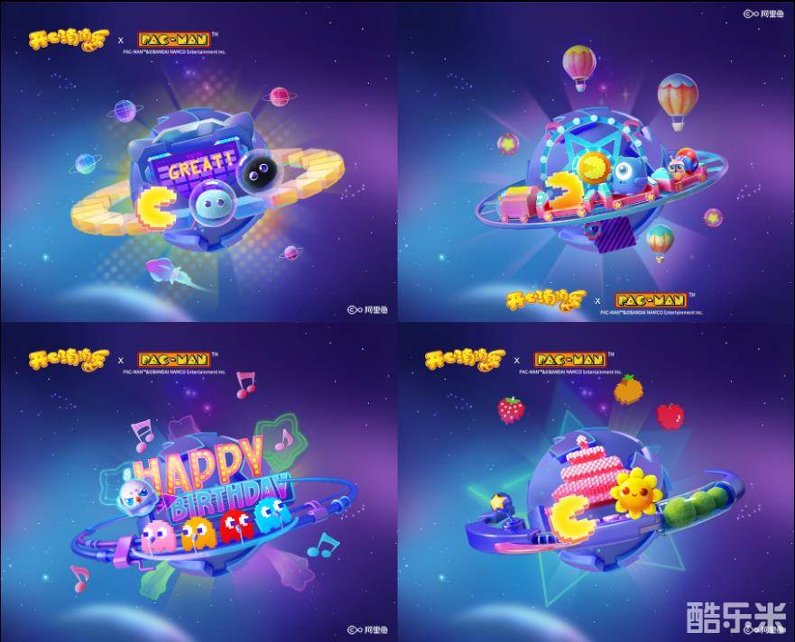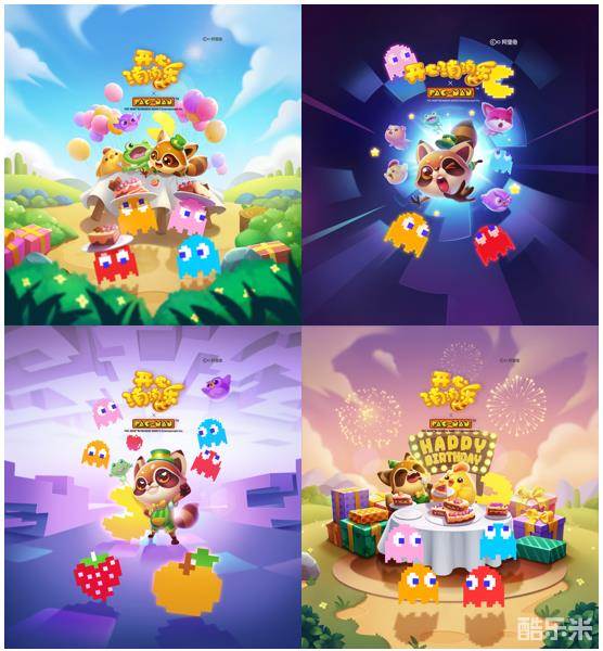 本次联动活动的海报也趣味非常,玩家们可一通过这四海报串联出一个完整的小故事:幽灵们携带蛋糕窜逃,小动物则在后方追逐抢糕大盗;小动物们来到了街机风格十足的吃豆人的星球;小动物和吃豆人携手闯关,打败幽灵夺回蛋糕;小动物与吃豆人共同庆祝生日趴。趣味剧情与游戏元素巧妙贴合,浓厚的生日氛围让玩家乐在其中!