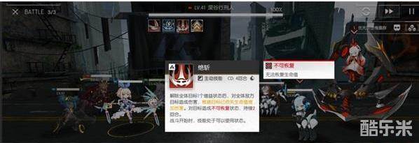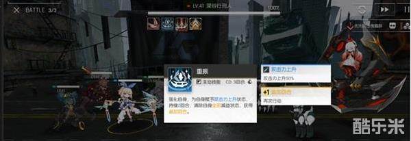 3.同时注意BOSS的蓝色技能重振,这技能会让她获得追加回合,也就是当她AOE还有2回合CD时,这重振技能CD好了立马开盾,不然还是要吃她的暴力AOE。