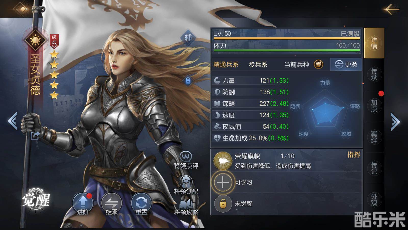 如果小伙伴们招募到相同将领,还可以进行将领进阶,消耗相同将领可进阶一星,从而获得额外的属性点,同时我们在满足觉醒条件后就能使你的将领觉醒,解锁第三个技能栏,拥有三个技能的将领战力会得到质的飞跃。