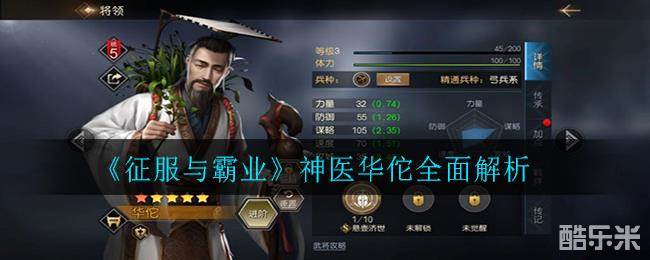 征服与霸业神医华佗怎么样?很多小伙伴对于这个将领的能力以及搭配不太了解,那么小编就给大家介绍一下,下面小编给大家带来游戏中最强的医师型将领华佗的全面解析,还不了解的小伙伴赶紧来看看吧。