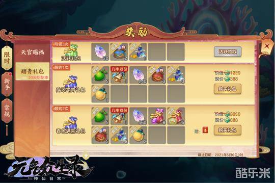 (1)新增“踏青礼包”:4月8日维护后-5月6日0点,上仙们可以在奖励-踏青礼包处进行购买