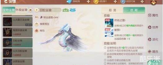 培养羽蛇宠物坐骑,根本点就是堆伤害,“高级精神闪耀”绝对是核心中的核心技能,因为可以更易触发暴击,从而更有机会击杀目标,打出追击效果。“高级精神能量”、“高级精神切割”、“高级灵动”也都是要搭配上的技能。