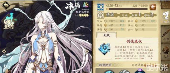 - 冰璃(4星,43级,1877,15+12+15幽魉,幽剑+避实+定魂)(需要携带击杀再动2格的饰品)