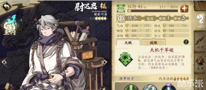 - 尉迟良(4星,43级,1312,10+5+5罗鬼,天机+避实+蓄势)