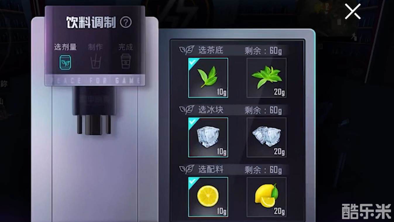 在饮料调制环节,玩家可以选择茶底、冰块以及柠檬的量,在制作完成后,就会随机出现一瓶饮料。