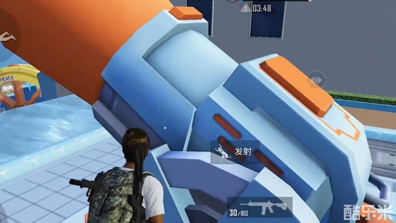 在飞艇上,除了音乐舞台,还有泳池派对,玩家可以在泳池上找到一个炮台,在接近炮台时,会出现一个发射的按钮,玩家只要按下这个按钮,就可以被发射到飞艇的中心!