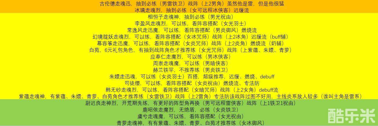 开荒期不练卓,主角团很强大,能上绝上绝,看你阵型需求,大家抽到什么养什么就好了,不是没绝不能玩,都是看阵型角色优先。