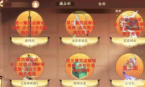在这款游戏里,文物的找寻和收集不是一件容易的事,接下来告诉大家一些比较难找的,第二章中,茶碾子在货字前方,场景二上方房间中有帷帽在大门口,也称昭君帽。场景五里有一个青瓷灯盏在左侧案台上。而花钿则在右侧灯下,外形似散花。第三章的场景一种的马球球杖在两个小怪中间的地上,场景二中的银香囊在魇化公主的脚边。场景三中的披帛在贵妃左边。陌刀在房间的左侧地面上,而茶笼在楼梯前方。
