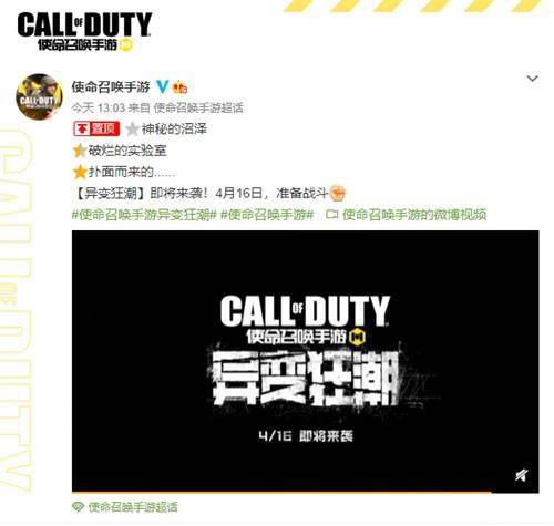 直面僵尸的恐惧 《使命召唤手游》新版本异变狂潮4月16日上线