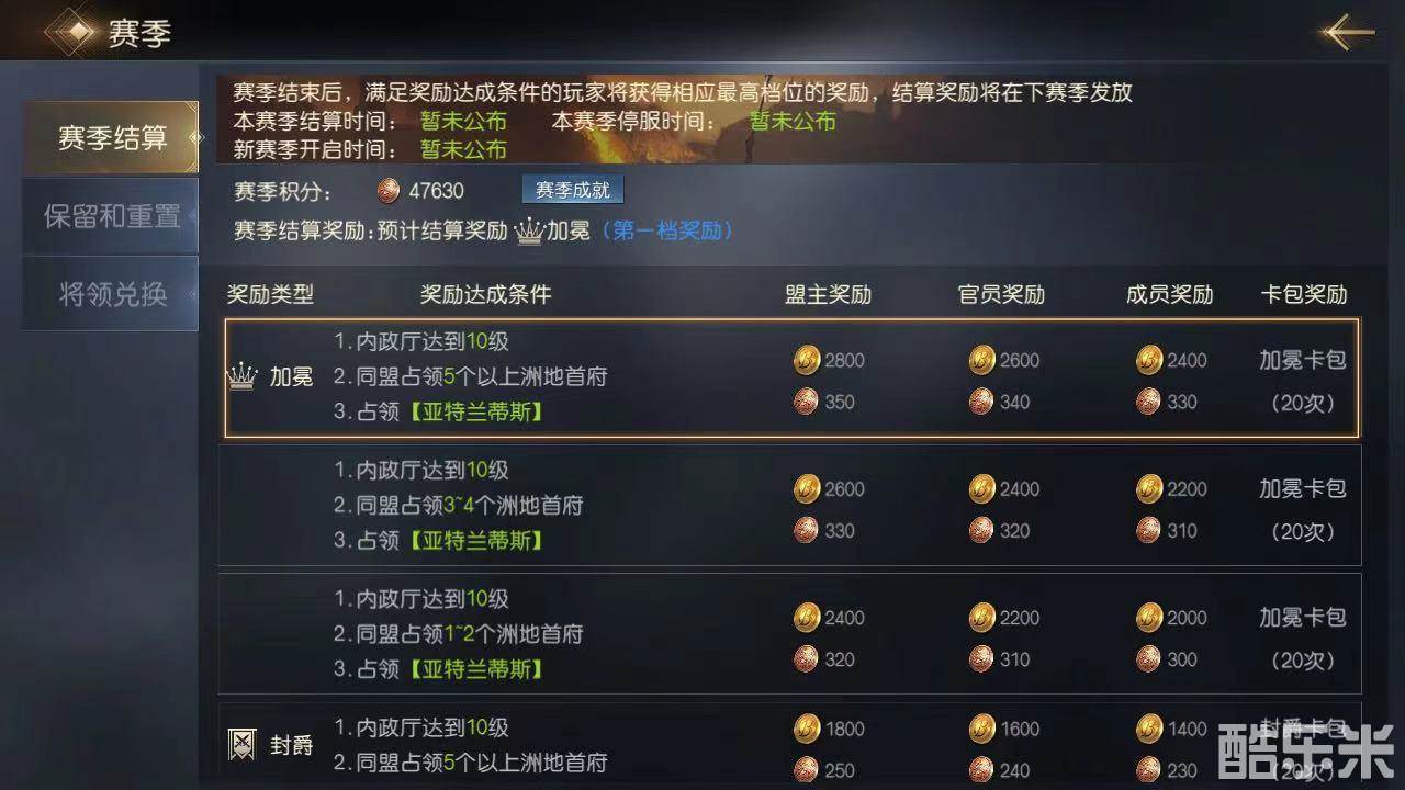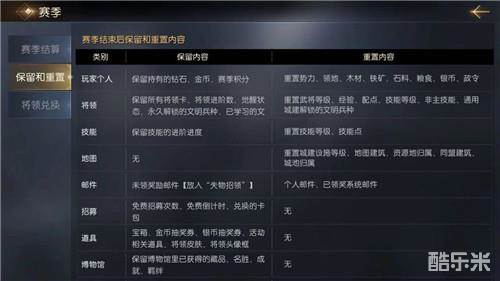 此外,赛季中将领、技能、金币、钻石等道具会保留,已经解锁的文明兵种、进阶状态、觉醒状态同样保留,而建筑等级、技能点、同盟数据会重置。玩家们在期待新赛季的同时,不要忘了为当前赛季的结算做好准备工作。