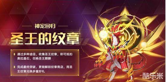 圣王麒麟的神宠回归中,将开启圣王纹章限时收集活动。活动期间,小奥拉可通过领取每日任务宝箱来获得圣王纹章,纹章可在圣王麒麟神宠回归活动中用于抵扣奥拉晶石,助力小奥拉获得圣王麒麟。此外,活动期间完成圣王麒麟最终突破后,还将解锁圣王麒麟纹章商店,可使用圣王纹章兑换多重好礼。