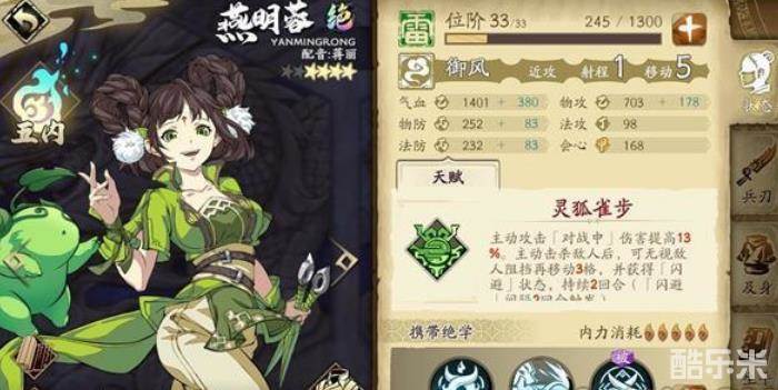 封铃笙有着再动队友的神技【瞬霎神仪】,PVP中,可以先远离战场待机燕明容给对面没有威胁的假象,然后等对面全部行动完毕后用【瞬霎神仪】再动燕明蓉利用高机动性【灵狐穿刺】切入对方后排心脏,为下回合一开场用无视护卫技能给一名脆皮一击致命埋下伏笔。