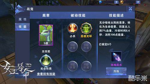 在《女王号令》当中,赛亚的勇士强者们每次进行宠物被动技能洗练之时,都必须消耗一个洗练药水。通过洗练玩法,宠物们才有机会获得高级的被动技能,威力效果更加逆天。而除了已经被锁定的被动技能,每次使用洗练药水将会重置宠物已经获得的其它所有被动技能!