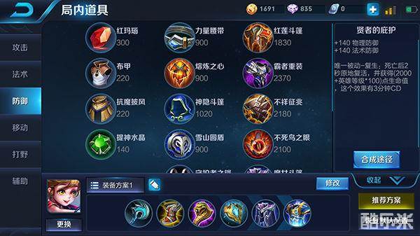 出装思路:孙膑这套出装的属性非常全面,兼顾了法术输出和抗伤害的能力。孙膑对线主要依靠一技能来牵制敌人打出伤害,所以第一件做出冰霜法杖在打出伤害的同时,还可以给敌人附加减速效果,无论对线还是在游走的时候实用效果都非常强,随后做出疾步之靴来进一步提升孙膑的机动性,第三件梦魇之牙提供高额法术攻击的同时也可以百分比提高孙膑的移动速度,同时还可以附加重伤效果限制敌方的回复能力。中后期孙膑转出肉装,让后期团战可以吸收更多的伤害,首先做出极寒风暴,在提升物理防御的同时,装备特效还可以在被攻击时触发范围敌方攻速和移速的衰减,并造成一定的法术伤害,随后做出魔女斗篷提高孙膑的法术防御能力,最后一件可以在贤者的庇和贤者之书之中二选一,当己方团战需要输出的时候贤者之书,己方缺少前排的时候可以选择贤者的庇护。