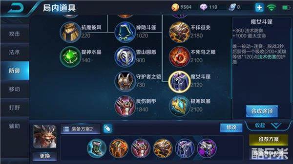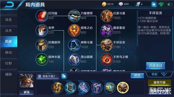 建议出装:近卫荣耀、抵抗之靴、冰痕之握、魔女斗篷、极寒风暴、不祥征兆