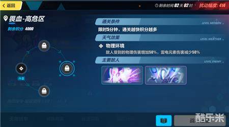 本期深渊扰动幅度为357(寂灭414),天气为物理环境,效果为敌人受到的物理伤害增加50%,雷电元素伤害减少50%,关底boss为娑婆 阿湿波。特异区为冰霜环境,推荐阵容为理云粉。