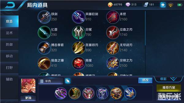 六神装:暗影战斧、影忍之足、反伤刺甲、魔女斗篷、不祥征兆、破军