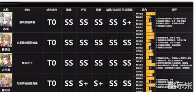想要组一队T0级阵容,大家首先要了解下有哪些是T0级别的人员,还要人物的一些基础知识适用哪些方向,下面给大家提供了一份T0级角色的排行图鉴,让大家了解哪些角色值得培养。