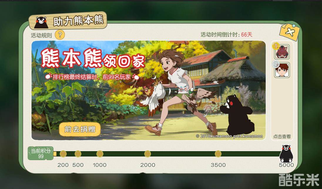 活动期间,获得指定积分还可额外获得熊本熊家具和助力纪念币,纪念币可在海街车站和熊本熊NPC处兑换纪念品。