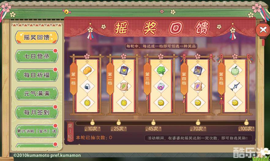 活动期间,摇奖回馈获得奖品也换成熊本熊限定道具,包括熊本限定·土豆、熊本限定·西兰花、熊本限定·甜瓜,帮助大家冲击积分榜!
