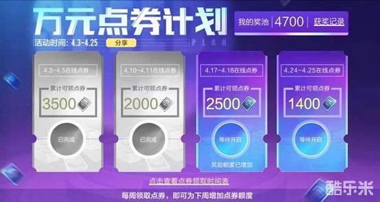 4月万元点券计划仍在每个周末火热进行中,车手们都领到多少点券了呢?本周末(4月17日-18日),更多点券不容错过!