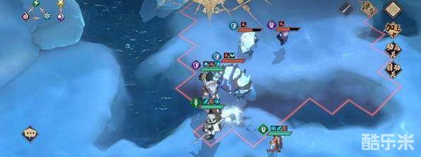 第三回合调整站位,第四回合,注意韩千秀的位置,这个点非常重要,可以卡住BOSS的直线大招而且让BOSS两回合内单点韩千秀,韩千秀要站在这个位置上在给个aoe挂上燃烧