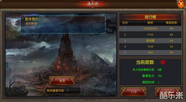 如果玩家当天挑战的层数不是历史最高层,那么玩家可以选择直接扫荡至历史最高层。