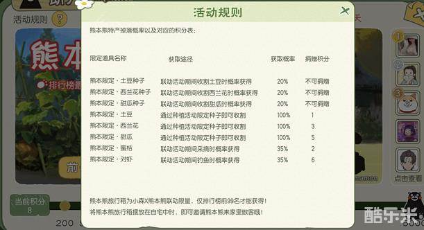 小森生活与熊本熊联动活动在近期正式开启了,在本次的联动活动中,将上线各种限定的物品,其中有限定土豆、限定蜜桔、限定对虾等物品。