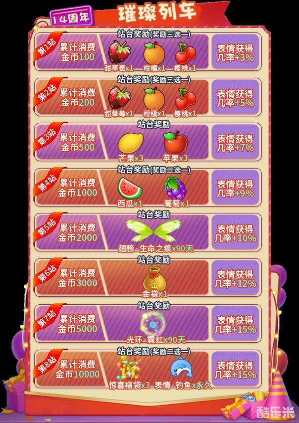璀璨列车:活动期间,消费的金币越多,可获得的奖励越多!