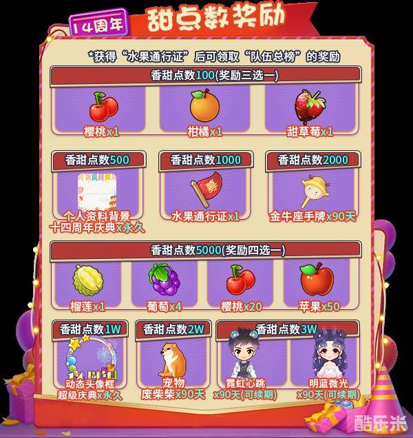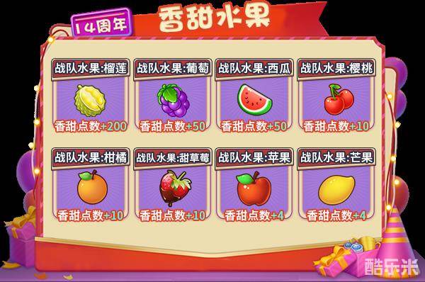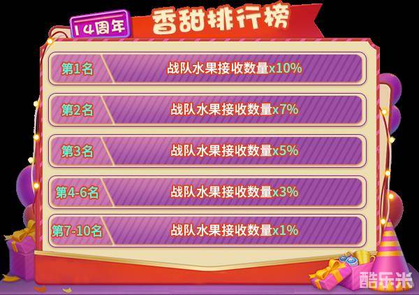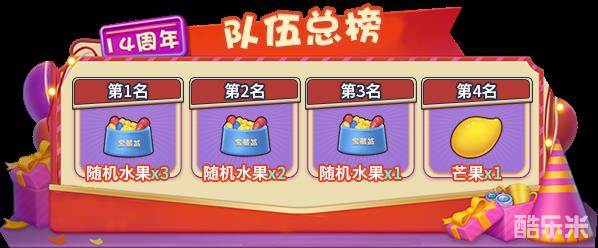 4、 需通过“香甜点数奖励”获得“水果通行证”后才能获得“队伍总榜”奖励;