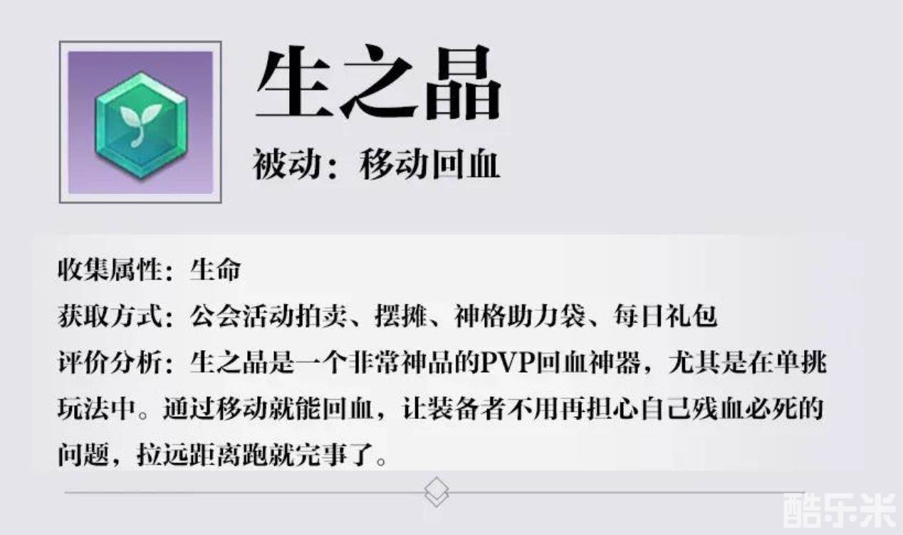 常见的pvp神格有四种,分别是:1.韧之晶,2.星之晶,3. 生之晶,4.时之晶。如果按优先级而定,最优为3,次之为1,再次之为4,最后是2。