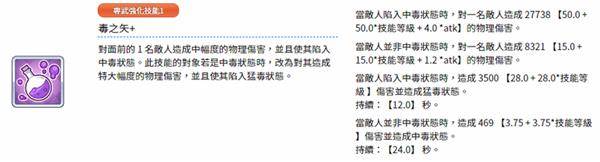 要注意毒弓的技能循环,在队伍里没有病娇的情况下,只有两次一技能毒DEBUFF都打在同一个角色身上,才会出现猛毒BUFF。