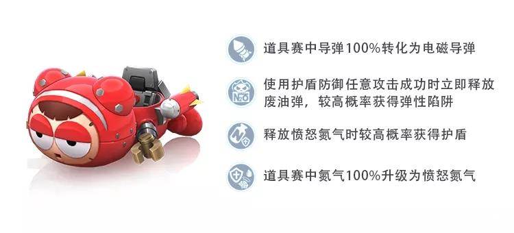 当钢铁宝宝获得氮气时,100%概率会升级为愤怒氮气,释放愤怒氮气后,超强加速同时较高概率获得护盾,使用护盾防御成功可以有效与2技能产生联动,提升防御力的同时进一步提升钢铁宝宝的路面设障能力。