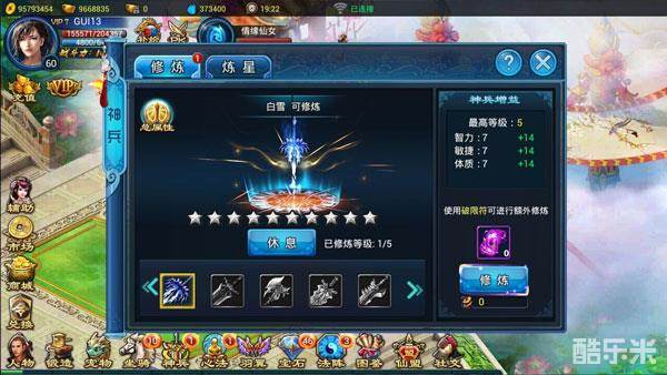 当神兵修炼达到满级后,玩家可以对神兵进行炼星,从而使神兵获得更加强大的属性。