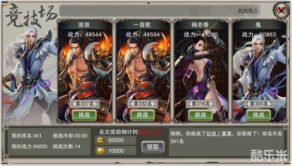 1、在竞技场中,玩家可挑战其他玩家。挑战成功或失败,都会获得相应的挑战奖励。