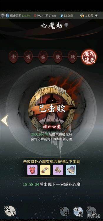 心魔玩法:需要炼化五个心魔并且魔气遮天倒计时结束后方可开启合体/混元境界。
