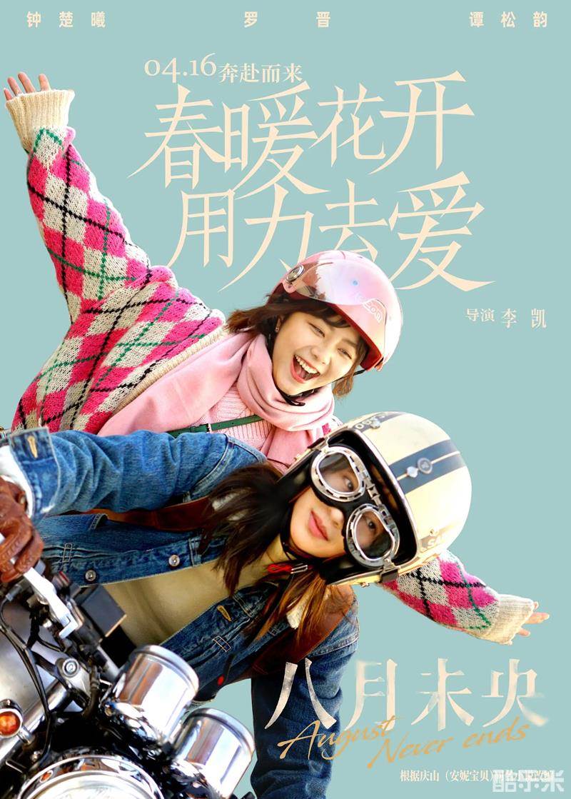 由李凯执导,钟楚曦、罗晋、谭松韵领衔主演的青春电影电影《八月未央》,今日正式上映!两位性格迥异的闺蜜,一起历经两世轮回、追寻三段羁绊情缘,一起欢笑、一起胡闹,温情陪伴、不离不弃的青春之旅,正等着花儿与少年郎们携手共赴。
