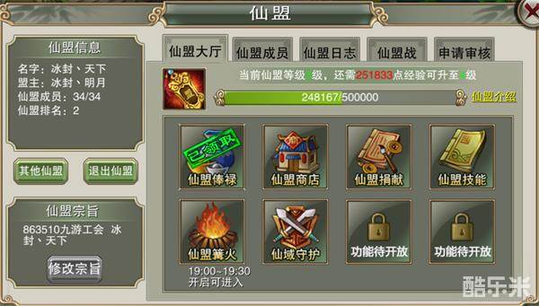 1、可通过仙盟大厅参与仙盟内各种活动,包括领取仙盟俸禄、学习仙盟技能、参与仙盟篝火、仙域守卫等。