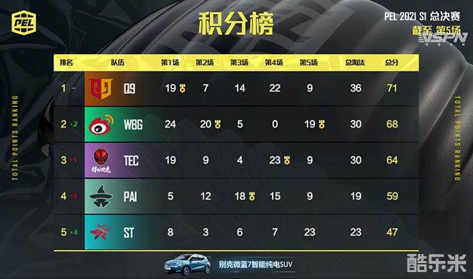披荆斩棘,一战成名!PEL 2021 S1赛季总决赛首日战况异常激烈,首日积分榜也呈现焦灼之势,Q9战队、WBG战队、TEC体坛电竞战队,总分分别以71分、68分、64分,位列积分榜前三,比分差距非常小。