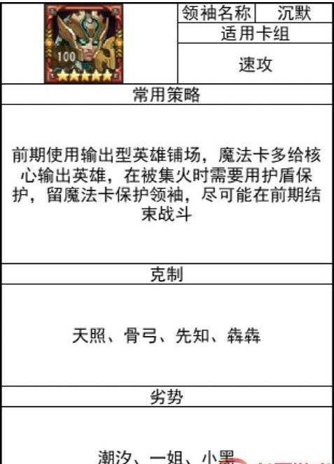 6、沉默,配合极端速攻流常用的领袖,前期速攻并压制敌方领袖蓝量效果很好,缺陷在于过于自身无回复无续航,前期打不死对手容易崩盘,克制与被克制都非常明显