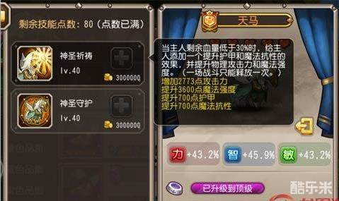 首先天马作为唯一的橙色品阶宠物,自然是要第一时间喂到五星的,五星状态下的天马可以为他的主人英雄提升43.2%的力量和敏捷,以及45.9%的智力,算是比较均衡的大幅提升,大致与90+的博学社等级提升幅度相同,将原本五星英雄的属性提升到接近七星的水准。对于大部分普通属性的英雄来说,满级的提升大约在400点三围左右,比洗练和符石的提高都要明显。