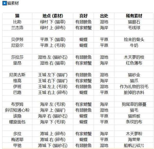 ②猫形态时在地图۞处抓取小动物,然后送给其他猫,可获得素材,并提高好感度(㉧>○>-),好感度提高到一定值时,可获得稀有素材(每只猫给的不同)。