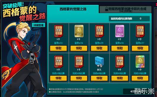 4月22日~4月27日每日登陆可以签到和完成任务可以领取道具奖励或“觉醒西格蒙创建卡碎片”。