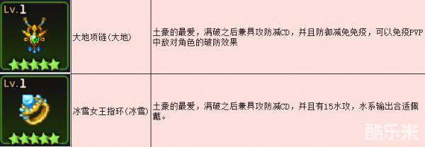 大地和冰雪是竞技场土豪专用饰品,特别是大地的免疫效果,在国际服远古版本没有突破锤的时代都是抽武器几百上千次才凑齐6个满破的。