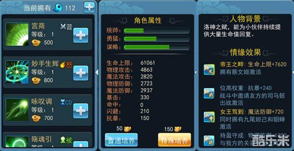甄宓属于buff战姬系列的,擅长治疗,防御也不低。可能被曹丕甩了之后就不喜欢曹姓人士了,与她结缘的有【蔡文姬】、【司马懿】、【九尾妲己】、【貂蝉】、【关羽】(喂,怎么那么多美女啊!是要建立后宫吗?!),分别能产生+生命、+抗暴(这个真的好重要吖!)、+魔防、+物防的buff效果。