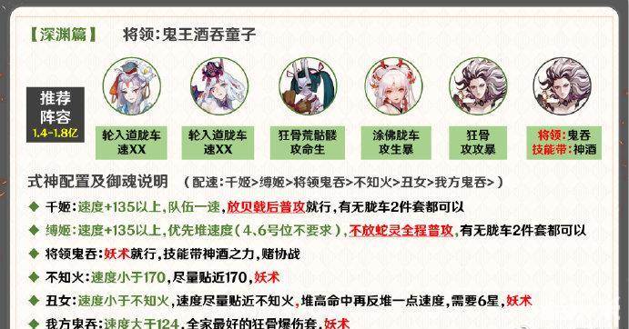 1.千姬缚姬轮入道+135最优,有胧车更好,速度越快越好,分数就高。【缚姬需要满1技能破防,千姬最好满123】