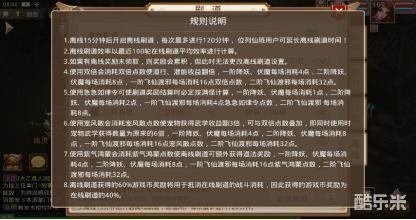 第六,关于离线,如果离线满了的话,尽量选择离线,因为离线的效率最稳定不会变,相对来说比在线伏魔给的多。领取离线奖励和领取帮战奖励要看时间,因为离线奖励有满的时候,帮战邮件可以留7天,尽量升级之后再领,当然,也要算好时间,如果短期内不能升级,就不用留了,这个主要针对新区玩家。